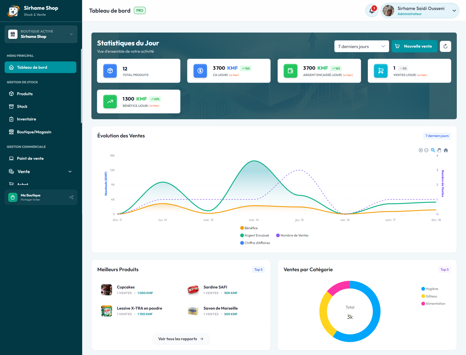 Puissant, intuitif et sécurisé. ZawadiCom vous donne une visibilité totale sur votre inventaire, vos ventes et vos bénéfices en temps réel.